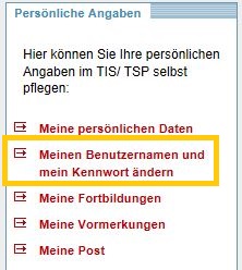 Pflege der persönlichen Angaben: Meinen Benutzernamen und mein Kennwort ändern