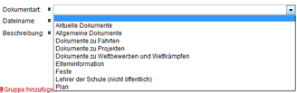 Die Auswahl einer Dokumentengruppe erfolgt aus dem Drop-Down-Menü , es können beliebig viele Gruppen hinzugefügt werden.