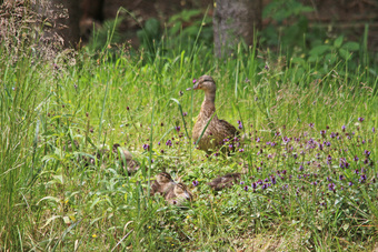 Das Foto hehört zur Serie "Stockenten". Es zeigt eine weibliche Stockente (Anas platyrhynchos) mit Küken. Es gelten die Nutzungsbedingungen der Mediothek und Pixiothek.