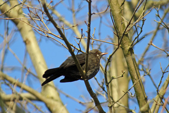 Das Foto hehört zur Serie "Amseln". Es zeigt eine Amsel (Turdus merula), auch Schwarzdrossel genannt, eine Vogelart der Familie der Drosseln. Die Männchen sind schwarz gefärbt und haben einen gelben Schnabel, das Gefieder der Weibchen ist größtenteils dunkelbraun. Es gelten die Nutzungsbedingungen der Mediothek und Pixiothek.