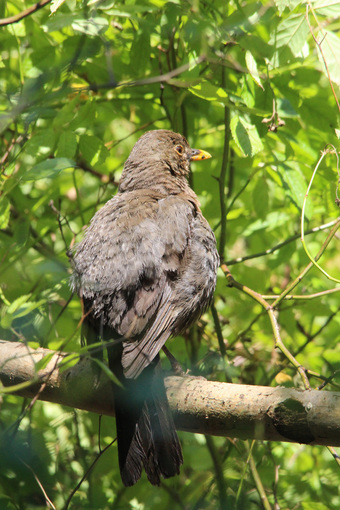 Das Foto hehört zur Serie "Amseln". Es zeigt eine Amsel (Turdus merula), auch Schwarzdrossel genannt, eine Vogelart der Familie der Drosseln. Die Männchen sind schwarz gefärbt und haben einen gelben Schnabel, das Gefieder der Weibchen ist größtenteils dunkelbraun. Es gelten die Nutzungsbedingungen der Mediothek und Pixiothek.