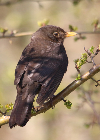 Das Foto hehört zur Serie "Amseln". Es zeigt eine Amsel (Turdus merula), auch Schwarzdrossel genannt, eine Vogelart der Familie der Drosseln. Die Männchen sind schwarz gefärbt und haben einen gelben Schnabel, das Gefieder der Weibchen ist größtenteils dunkelbraun. Es gelten die Nutzungsbedingungen der Mediothek und Pixiothek.