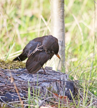Das Foto hehört zur Serie "Amseln". Es zeigt eine Amsel (Turdus merula), auch Schwarzdrossel genannt, eine Vogelart der Familie der Drosseln. Die Männchen sind schwarz gefärbt und haben einen gelben Schnabel, das Gefieder der Weibchen ist größtenteils dunkelbraun. Es gelten die Nutzungsbedingungen der Mediothek und Pixiothek.