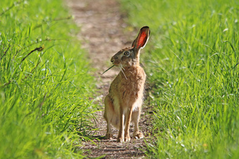 Das Foto hehört zur Serie "Hasen". Es zeigt einen Feldhasen (Lepus europaeus). Es gelten die Nutzungsbedingungen der Mediothek und Pixiothek.