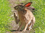 Das Foto hehört zur Serie "Hasen". Es zeigt einen Feldhasen (Lepus europaeus). Es gelten die Nutzungsbedingungen der Mediothek und Pixiothek.
