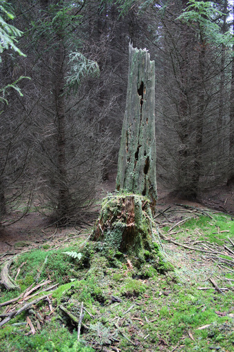 Das Foto gehört zur Serie "Wald". Es zeigt einen bemoosten Wurzelstock. Es gelten die Nutzungsbedingungen der Mediothek und Pixiothek.
