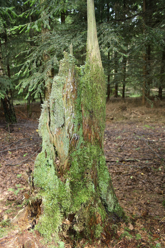 Das Foto gehört zur Serie "Wald". Es zeigt einen bemoosten Baumstock. Es gelten die Nutzungsbedingungen der Mediothek und Pixiothek.