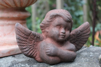 Das Foto zeigt eine Statue/ eine Figurine im Park/Garten, einen Engel. Das Bild ist unter CC0 lizenziert und kann somit frei verwendet werden.