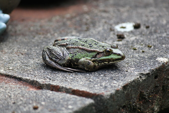 Teichfrosch auf der Mauer