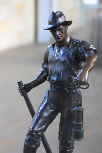 Das Foto zeigt eine Skulptur eines Bergarbeiters aus Bronze. Das Bild ist unter CC0 lizenziert und kann somit frei verwendet werden.