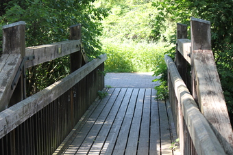 Das Foto zeigt eine Holzbrücke. Das Bild ist unter CC0 lizenziert und kann somit frei verwendet werden.