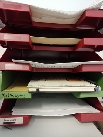 Das Foto gehört zur Serie "Büroausstattung". Es zeigt eine Dokumentablage, die u.a. für den Posteingang und den Postausgang in einem Büro genutzt wird. Das Bild ist unter CC0 lizenziert und kann somit frei verwendet werden.