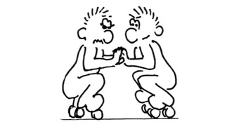 Das Bild gehört zur Serie "Paul". Es zeigt Paul und einen Freund auf Rollschuhen bei einem Experiment zum 3. Newtonschen Gesetz. Das Bild ist unter CC0 lizenziert und kann somit frei verwendet werden.