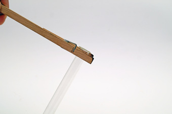 Das Foto gehört zur Serie "Experimente Chemie". Es veranschaulicht die Befestigung der Reagenzglasklammer unter dem Bördelrand vom Reagenzglas. Das Bild ist unter CC0 lizenziert und kann somit frei verwendet werden.