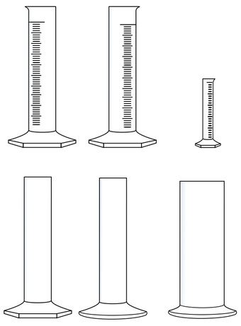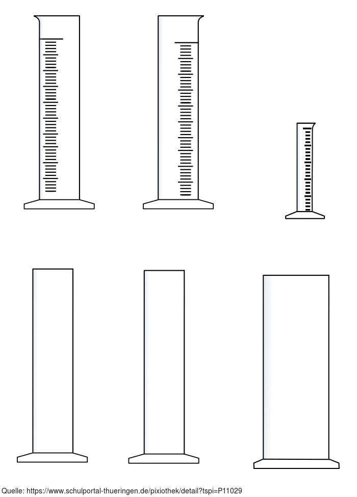 Das Bild gehört zur Serie "Chemie Grafiken". Es zeigt verschiedene Standzylinder und Messzylinder zur Gestaltung von Arbeitsblättern. Das Bild ist unter CC0 lizenziert und kann somit frei verwendet werden.