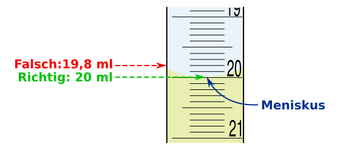 Das Bild gehört zur Serie "Chemie Grafiken". Es veranschaulicht das richtige Ablesen vom Flüssigkeitsstand in einer Bürette unter Beachtung des Meniskus. Das Bild ist unter CC0 lizenziert und kann somit frei verwendet werden.