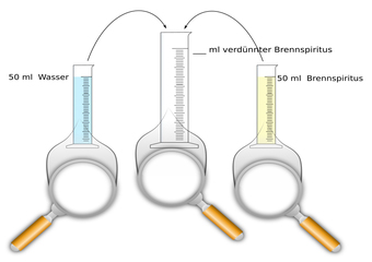 Alkohol und Wasser mischen - Ergebnis