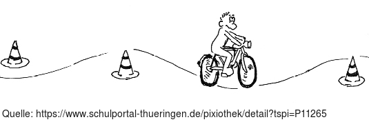 Das Bild gehört zur Serie "Paul". Es zeigt Paul auf Slalomkurs mit dem Fahrrad. Der Fahrweg ähnelt einer sinusförmigen Welle. Das Bild ist unter CC0 lizenziert und kann somit frei verwendet werden.