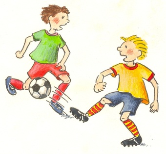 Das Bild gehört zur Serie "Sport". Es zeigt gezeichnete Jungen beim Fußballspiel. Es gelten die Nutzungsbedingungen der Mediothek und Pixiothek.
