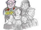 Das Bild gehört zur Serie "Familienmitglieder als Zeichnung". Es zeigt den Vater im Kreise seiner Familie. Es gelten die Nutzungsbedingungen der Mediothek und Pixiothek.