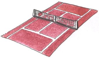 Das Bild gehört zur Serie "Sport". Es zeigt einen gezeichneten Tennisplatz. Es gelten die Nutzungsbedingungen der Mediothek und Pixiothek.
