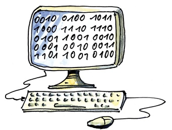 Das Bild gehört zur Serie "Schulfächer". Es zeigt ein gezeichnetes Symbolbild für das Unterrichtsfach Informatik. Es gelten die Nutzungsbedingungen der Mediothek und Pixiothek.
