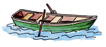 Das Bild gehört zur Serie "Schifffahrt". Es zeigt ein gezeichnetes Ruderboot. Es gelten die Nutzungsbedingungen der Mediothek und Pixiothek.