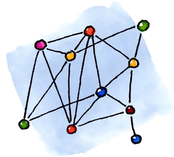 Das Bild gehört zur Serie "Icons Medien". Es zeigt ein gezeichnetes Symbolbild für ein Netzwerk bzw. eine Vernetzung. Es gelten die Nutzungsbedingungen der Mediothek und Pixiothek.
