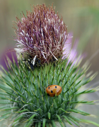 Das Foto hehört zur Serie "Käfer". Es zeigt einen Siebenpunkt-Marienkäfer oder Siebenpunkt (Coccinella septempunctata) aus der Familie der Marienkäfer. Es gelten die Nutzungsbedingungen der Mediothek und Pixiothek.