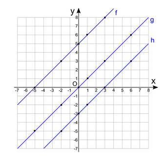 Lineare Funktionen mit gleichem Anstieg im Koordinatensystem
