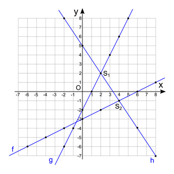Das Bild gehört zur Serie "Mathematik, lineare Funktionen". Es zeigt im Koordinatensystem drei lineare Funktionen. Die Funktionsgleichungen sind zu ermitteln. Weiterhin können Koordinaten von Schnittpunkten und Nullstellen abgelesen werden. Das Bild steht in den Ausführungen normal, leichte Hilfen, und mehrfache Hilfen zur Verfügung. Das Bild ist unter CC0 lizenziert und kann somit frei verwendet werden.