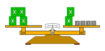 Das Bild gehört zur Serie "Mathematik, Gleichungen". Es veranschaulicht die Lösung einer linearen Gleichung durch Äquivalenzumformung mit dem Bild einer Waage. Zur Gleichung 22 veranschaulichen die Bilder 22-1 bis 22-4 die Umformungsschritte. Das Bild ist unter CC0 lizenziert und kann somit frei verwendet werden.