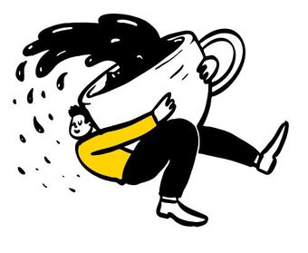 Die Zeichnung "coffee" aus der Serie "Open Doodles" zeigt einen jungen Mann mit einer überdimensionalen Kaffeetasse. Das Bild ist unter CC0 lizenziert und kann somit frei verwendet werden.