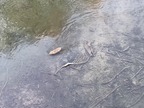 Das Bild zeigt ein Motiv aus dem Park an der Ilm in Weimar vom April 2020. Im Wasser zu sehen ist eine Bisamratte. Es gelten die Nutzungsbedingungen der Mediothek und Pixiothek.