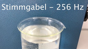 Das Video zeigt ein Experiment zur Stimmgabel im Wasserglas. Das Video ist unter CC0 lizenziert und kann somit frei verwendet werden.