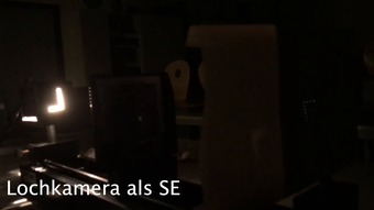 Das Video zeigt ein Experiment zu Einstellungen an der Lochkamera. Das Video ist unter CC0 lizenziert und kann somit frei verwendet werden.