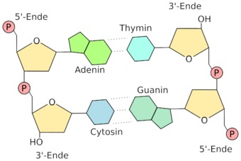 Vereinfachter Aufbau der DNA mit Wasserstoffbrücken.