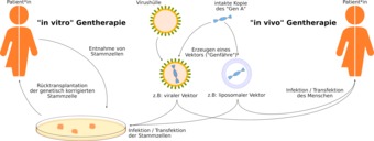 Schema "in vivo" und "in vitro" Gentherapie.