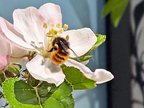 Gehörnte Mauerbiene auf einer Apfelblüte