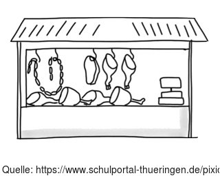 Das Bild gehört zur Serie "Grundschulwortbilder". Es zeigt eine Metzgerei als Symbolbild für den Buchstaben M. Das Bild ist unter CC0 lizenziert und kann somit frei verwendet werden. Es ist neben weiteren Bildern auch hier zu finden: https://moodlelab.moodleschule.de/