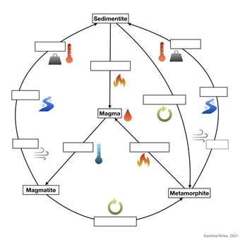 Das Bild verdeutlicht den Gesteinskreislauf. Bild-Variante: farbig; unbeschriftet. Es gelten die Nutzungsbedingungen der Mediothek und Pixiothek.