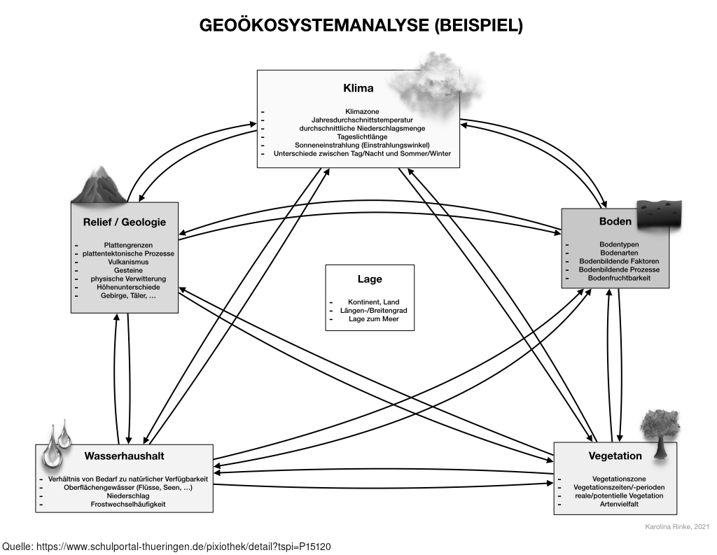 Das Bild zeigt das Beispiel einer Geoökosystemanalyse. Bild-Variante: s/w; teilbeschriftet. Es gelten die Nutzungsbedingungen der Mediothek und Pixiothek.