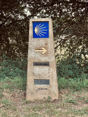 Das Bild gehört zur Serie "Jakobsweg - Camino Francés". Abgebildet ist ein Wegweiser am Pilgerweg. Es gelten die Nutzungsbedingungen der Mediothek und Pixiothek.
