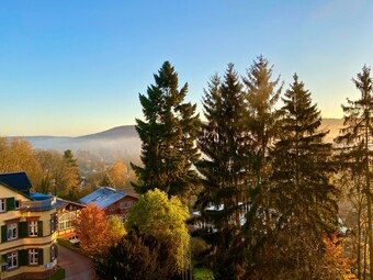 Das Bild zeigt einen herbstlichen Sonnenaufgang im Weimarer Land in Thüringen. Es gelten die Nutzungsbedingungen der Mediothek und Pixiothek.