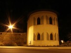Motiv eines Stadtrundganges durch Pößneck (Ostthüringen) bei Nacht. Abgebildet ist der Blick über den Oberen Graben zum Pulverturm. Es gelten die Nutzungsbedingungen der Mediothek und Pixiothek.