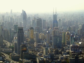 Das Foto gehört zu einer Serie mit 3 Motiven der Stadt Shanghai, aufgenommen im Oktober 2005. Die Fotos liegen jeweils im Original vor (sonniges Wetter, aber dunstig) sowie in einer bearbeiteten Version (Helligkeit herab-, Kontrast heraufgesetzt, Farbtemperatur und -ton verbessert; subjektiver Eindruck). Die Bilder dieser Serie können als Anregung bzw. als Einstieg für das Thema Bildbearbeitung dienen.