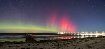 Das Bild gehört zur Serie „Polarlichter 2023 Zingst“. Es zeigt Polarlichter, die in der Nacht vom 26. Auf den 27. Februar 2023 gegen 0:30 in Zingst auf dem Darß mit einer Canon EOS RP aufgenommen wurden. Die Kameraeinstellungen: ISO 1600; Blende 2,8; 15 Sekunden Belichtung; manueller Modus. Mit bloßem Auge waren die Polarlichter in dieser Nacht deutlich zu sehen, aber natürlich nicht so farbenfroh wie auf dem Foto. Es gelten die Nutzungsbedingungen der Mediothek und Pixiothek.