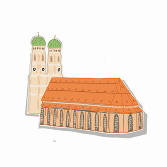 Das Bild zeigt die gezeichnete Frauenkirche in München. Das Bild ist unter CC0 lizenziert und kann somit frei verwendet werden.