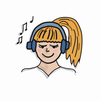 Das gezeichnete Bild zeigt eine Person mit Kopfhörer beim Anhören von Musik. Das Bild ist unter CC0 lizenziert und kann somit frei verwendet werden.