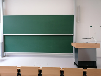 Das Bild zeigt eine Tafel in einem Hörsaal. Es wurde erstellt von Peter Bernardi für SeLL, HHU Düsseldorf. Es gelten die Nutzungsbedingungen der Mediothek und Pixiothek.